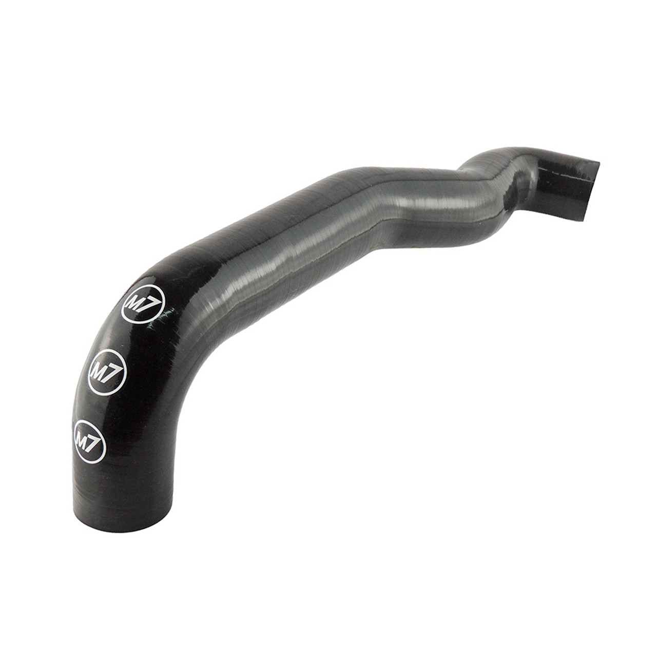 The M7 Pre-Intercooler Charge Pipe is a silicone hose that runs from the turbocharger's outlet to the intercooler's inlet, replacing the stock piping between these two components. The OEM parts were designed from the factory to silence any sound by breaking up the air path with restrictive piping and baffles.